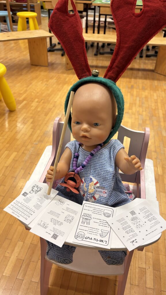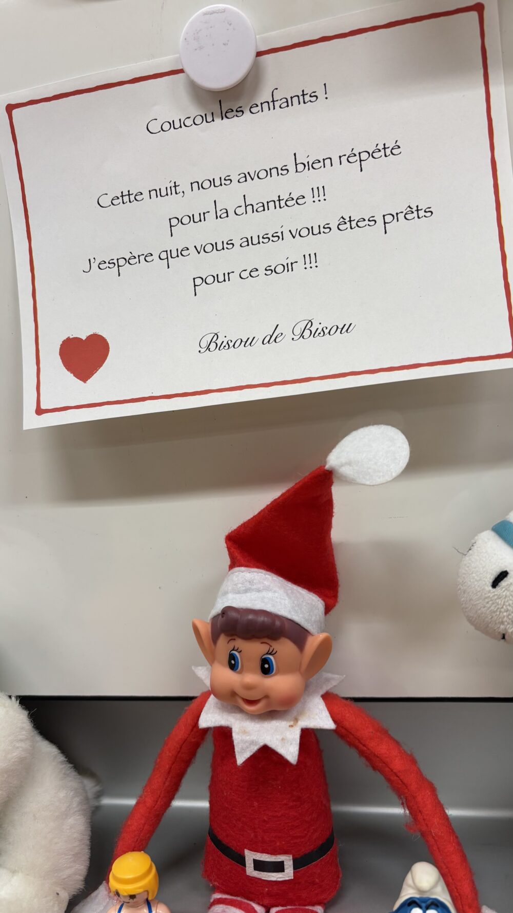Alice et Aeris ont remis Bisou dans son lit ! Tomate, le lutin d’Aeris est venu nous rendre visite et il tient compagnie à Bisou ! On espère qu’ils ne feront pas de bêtises !!!