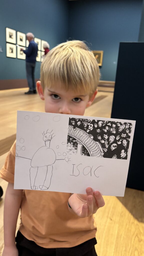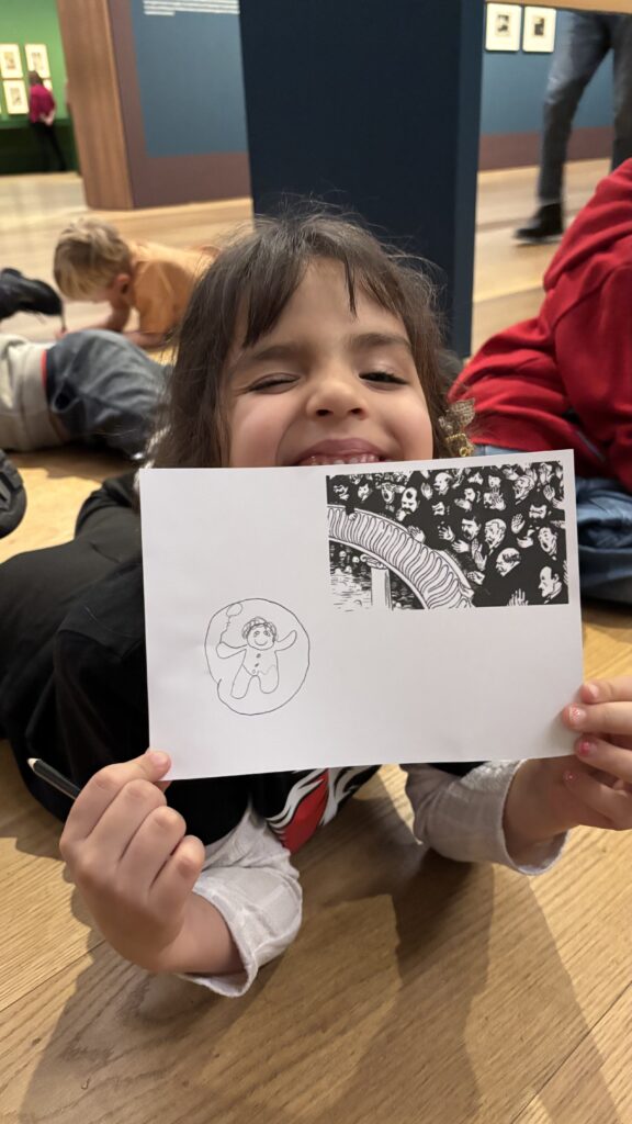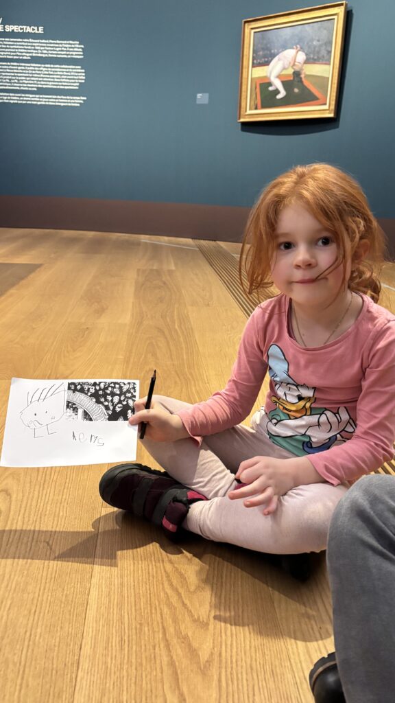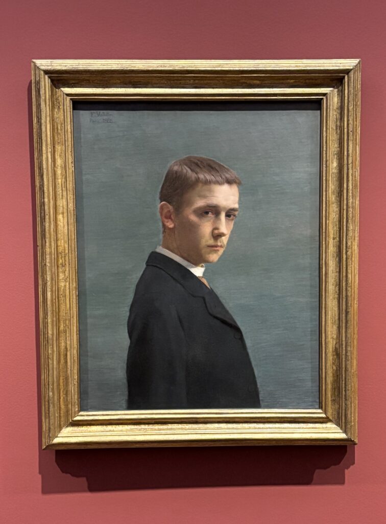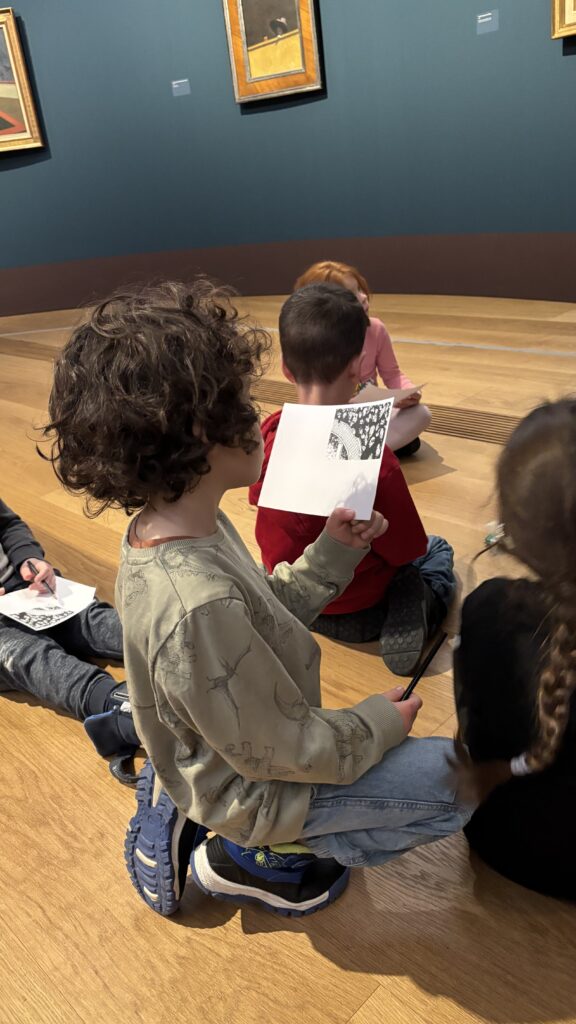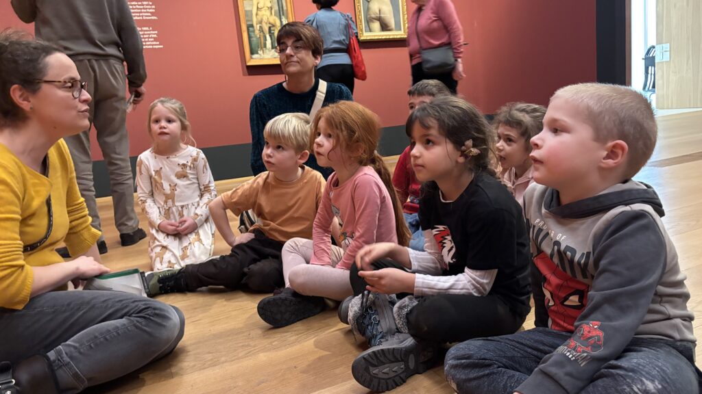 À notre arrivée, Gabrielle vient nous accueillir! C’est notre guide et elle est très gentille. Elle nous fait découvrir les tableaux de Félix Vallotton. Il est né à Lausanne et il est mort il y a 100 ans. Il aimait peindre les gens et aussi les paysages.