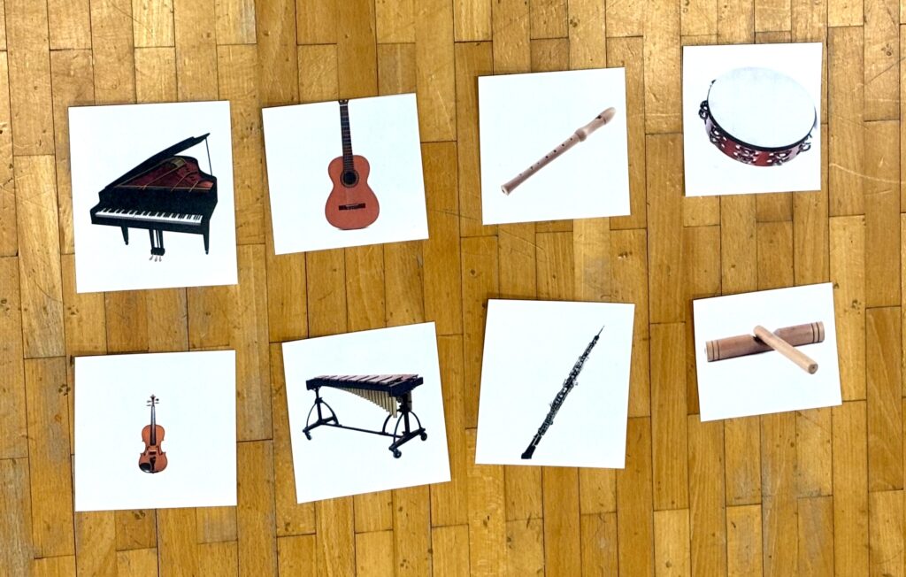 Le jeu suivant est de reconnaître les instruments de musique. Pour nous aider, Céline nous a amené des images.
