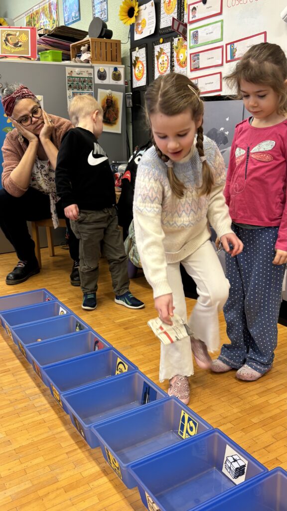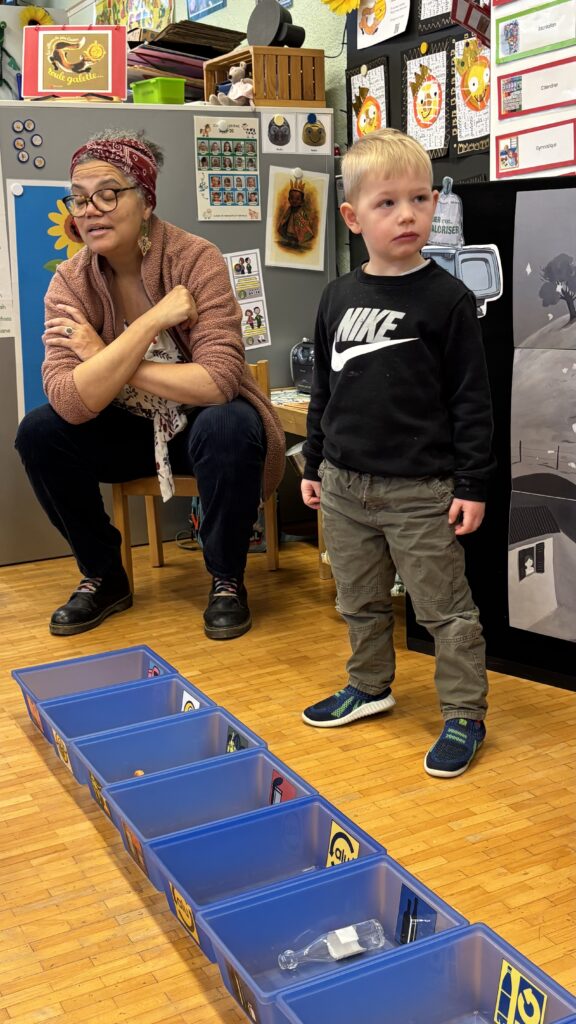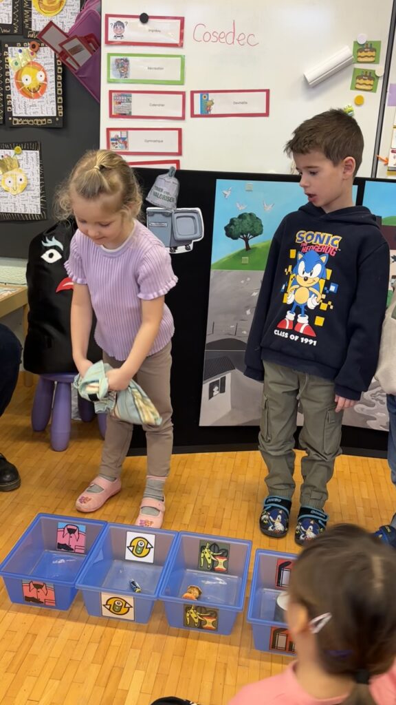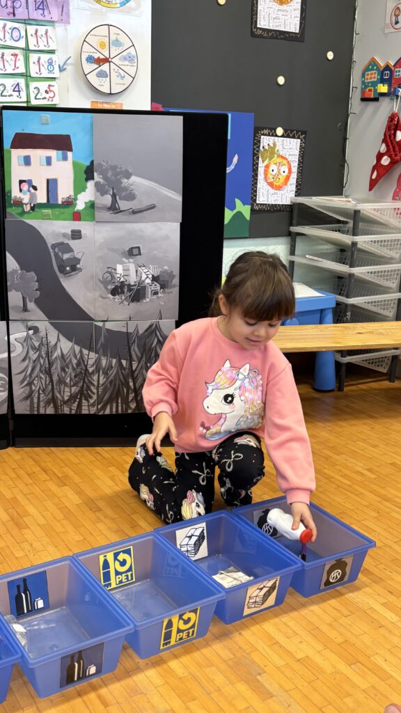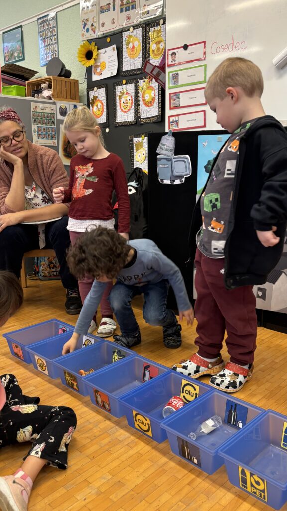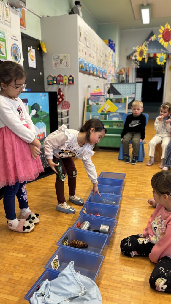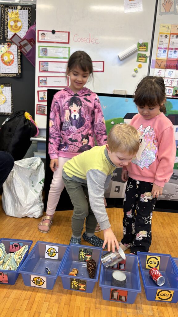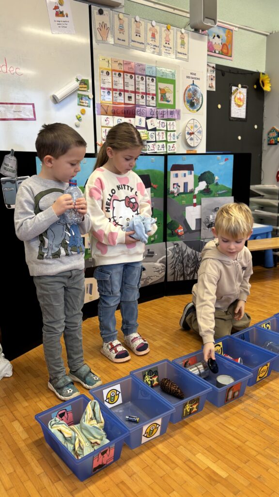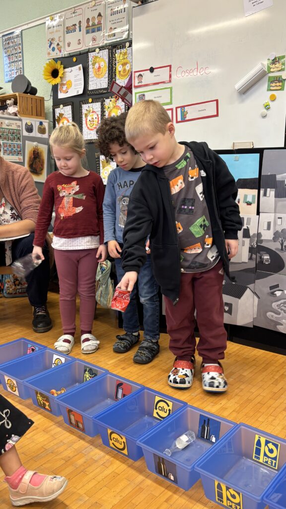 Estelle nous a aussi présenté Madame Poubelle. Elle a plein de déchets qui ne sont pas jetés dans la bonne poubelle, et cela la rend triste. Alors nous l’avons aidée à trier tout ça…