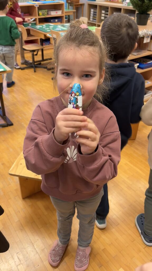 Ensuite, nous avons écouté la musique de Vangelis « 1492, Conquest of the Paradise ». Nous nous sommes aussi rappelé les différents tempo : lent, normal ou rapide. Nous avons aussi écouté différentes variantes avec un seul instruments de musique, 2 instruments de musique ou même tout l’orchestre. Ensuite, certains enfants ont chanté la chanson des pirates lentement, rapidement ou doucement. Ce n’est facile de chanter seul devant tout le monde, il faut beaucoup de courage !!!