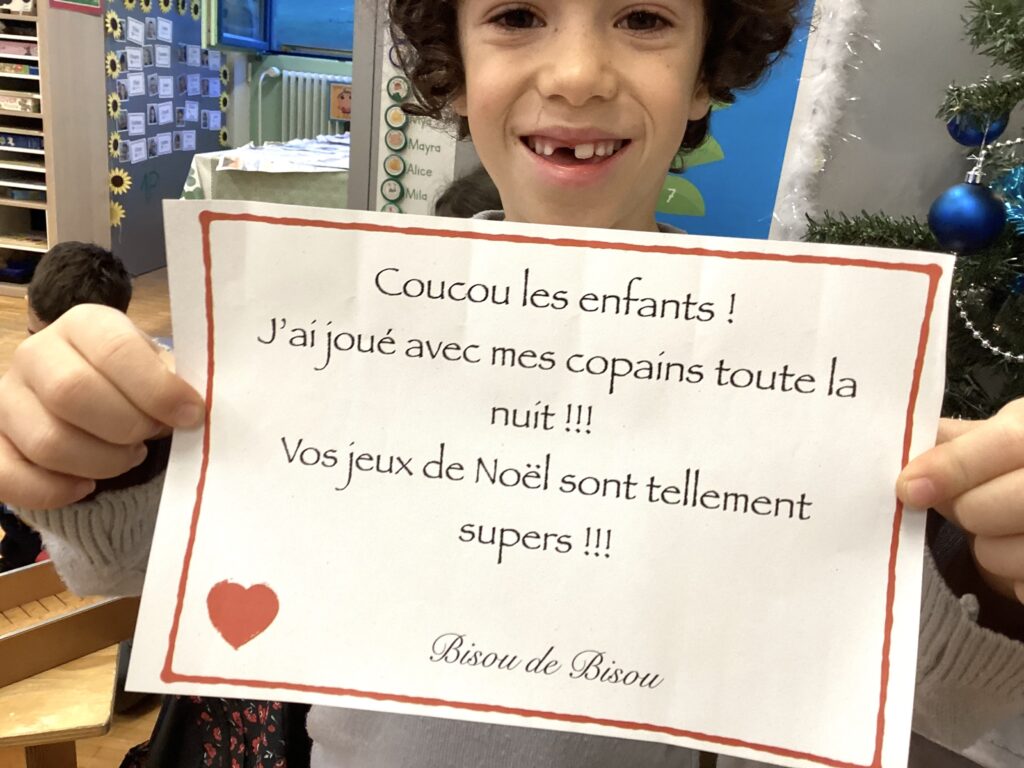 Nous aussi nous allons jouer aux jeux de Noël, mais avant cela, il faut remettre Bisou au lit !