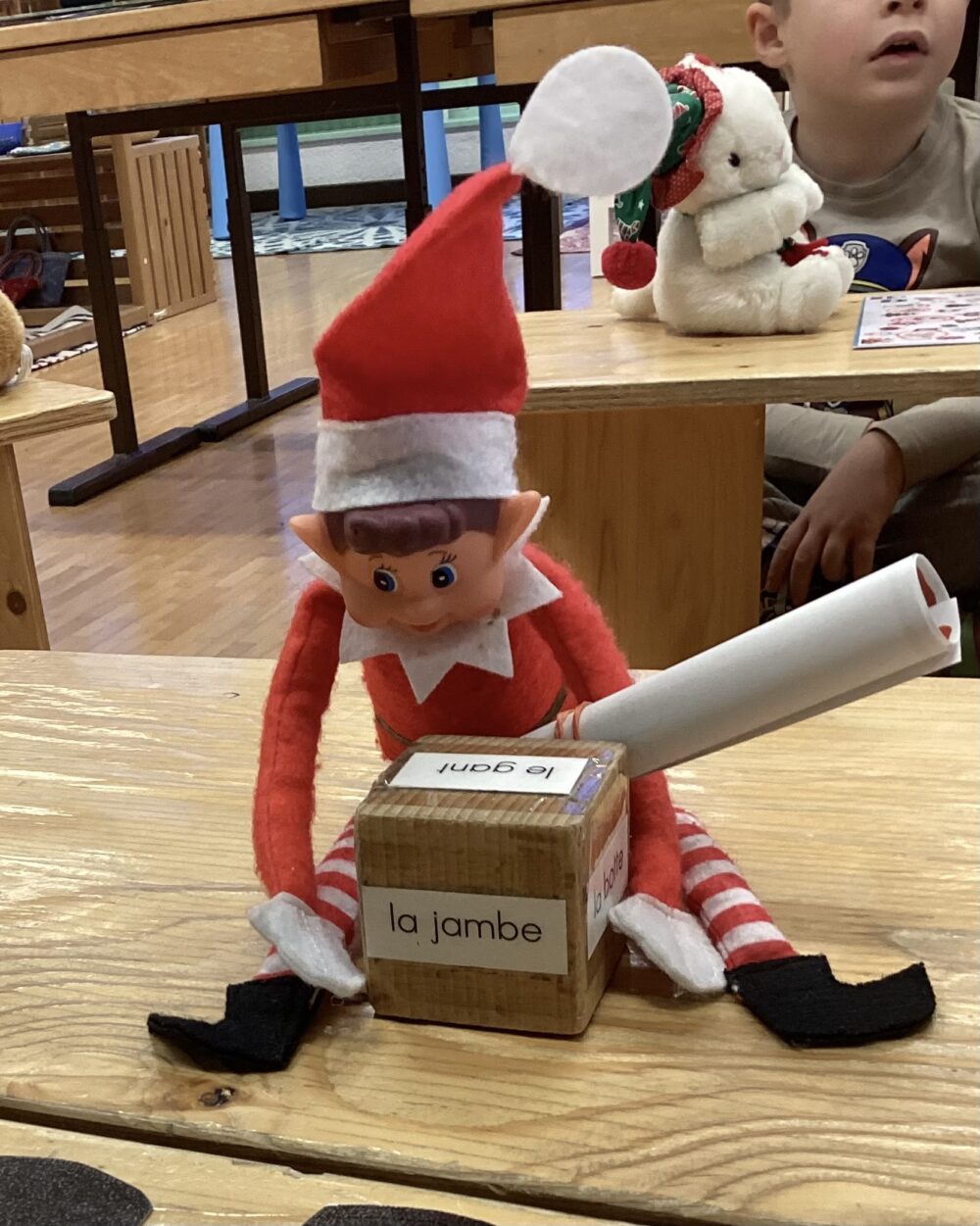 Après la récré, ça été à notre tour d’avoir un spectacle ! Heureusement cette fois-ci dans la salle de musique tout en haut du collège : Le lutin qui avait perdu Noël, un spectacle de Murielle Borel-Pradervand.